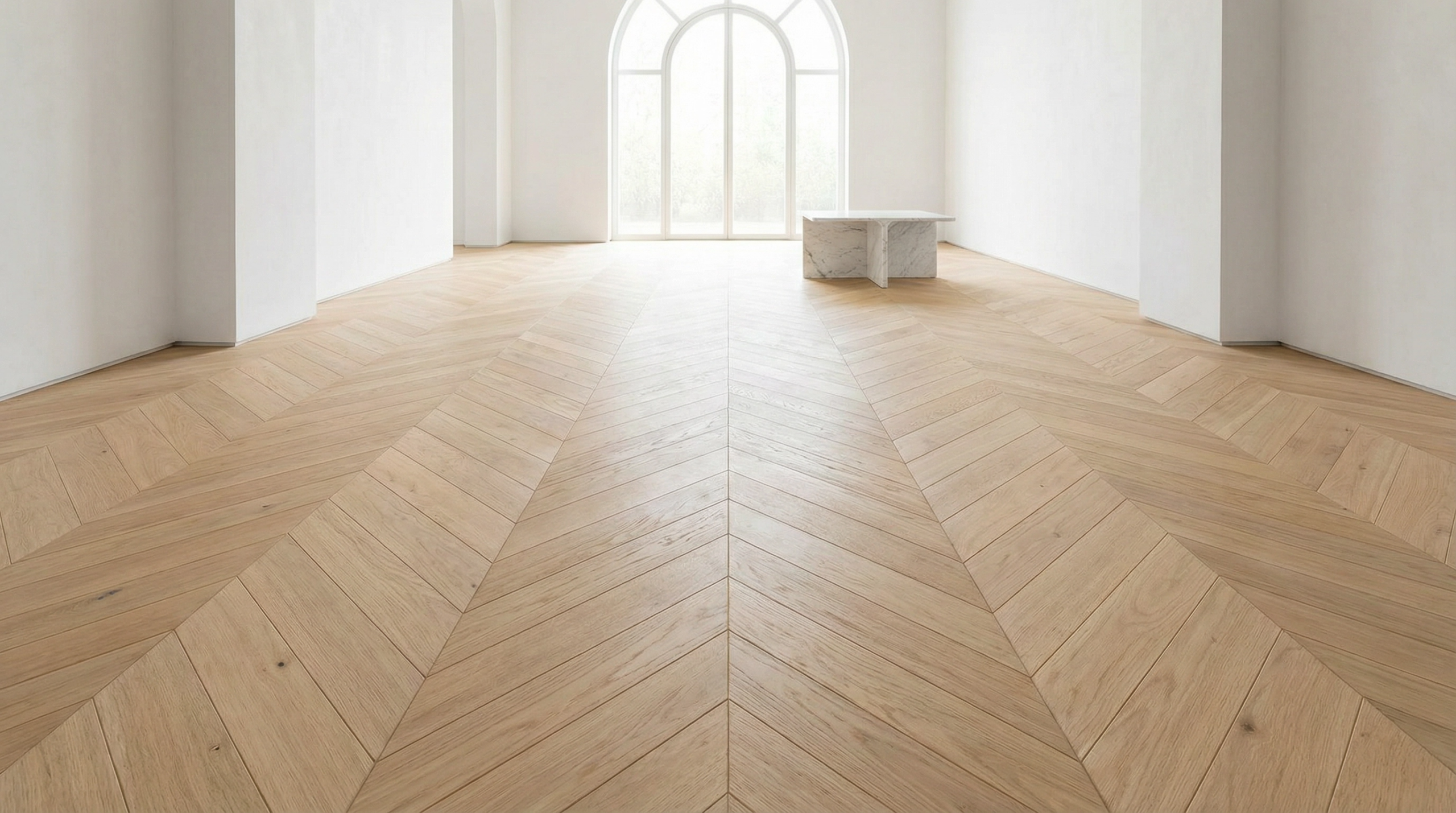 Chêneoak Chevron Parquetry delivers the timeless elegance of classic Europena interiors, milled from 100% solid single-origin Burgundy oak.