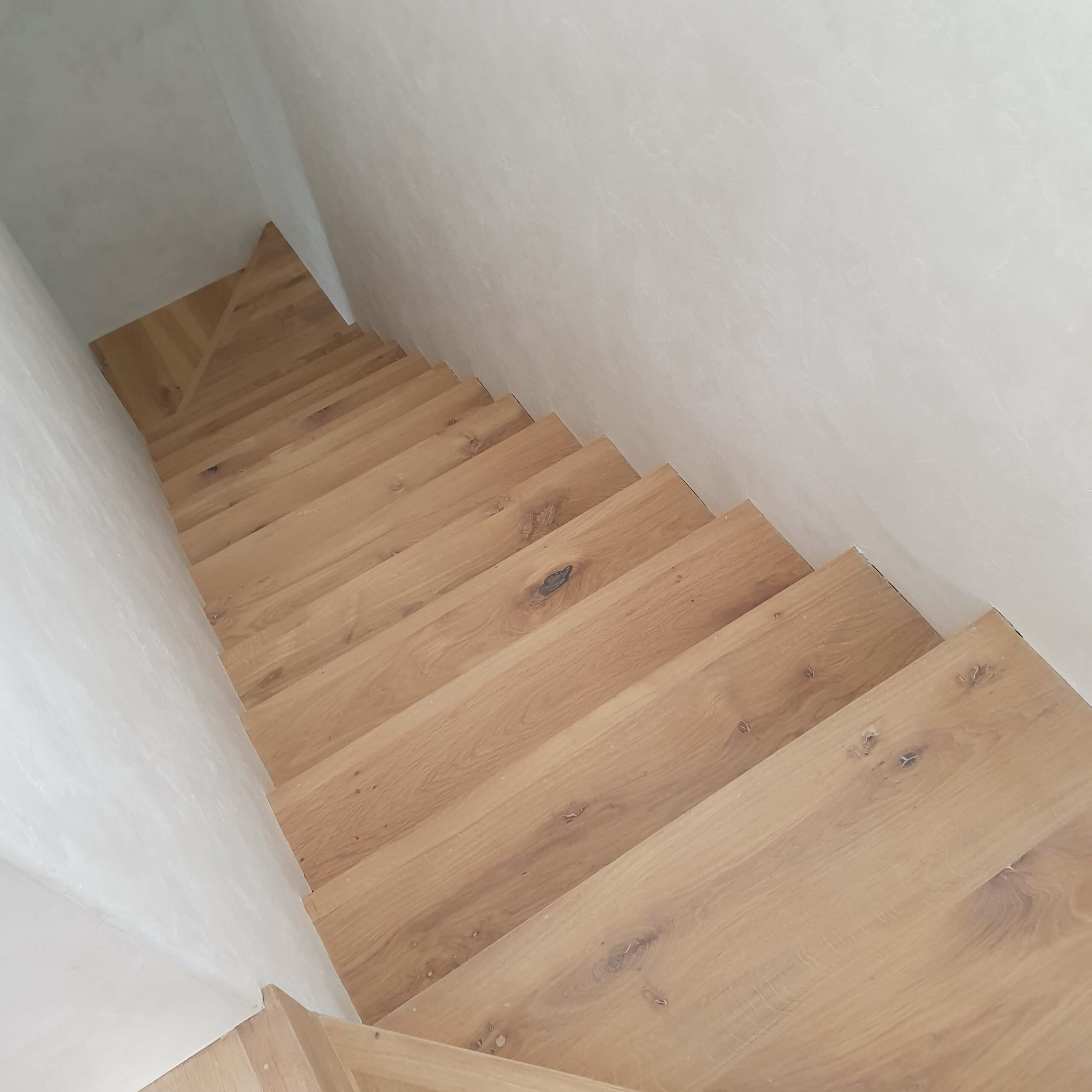 ChêneOak supplied solid French oak for both the treads and risers, specifically selecting a rustic grade to celebrate the timber’s natural variations, knots, and unique grain patterns. This approach transformed a functional straight-run staircase into a compelling architectural feature.