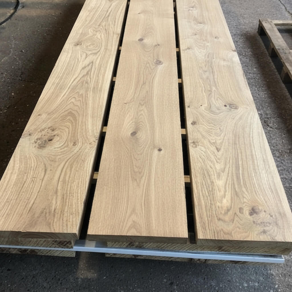 Solid French oak boards (200 × 27 mm) fabricated into 600 mm wide panels